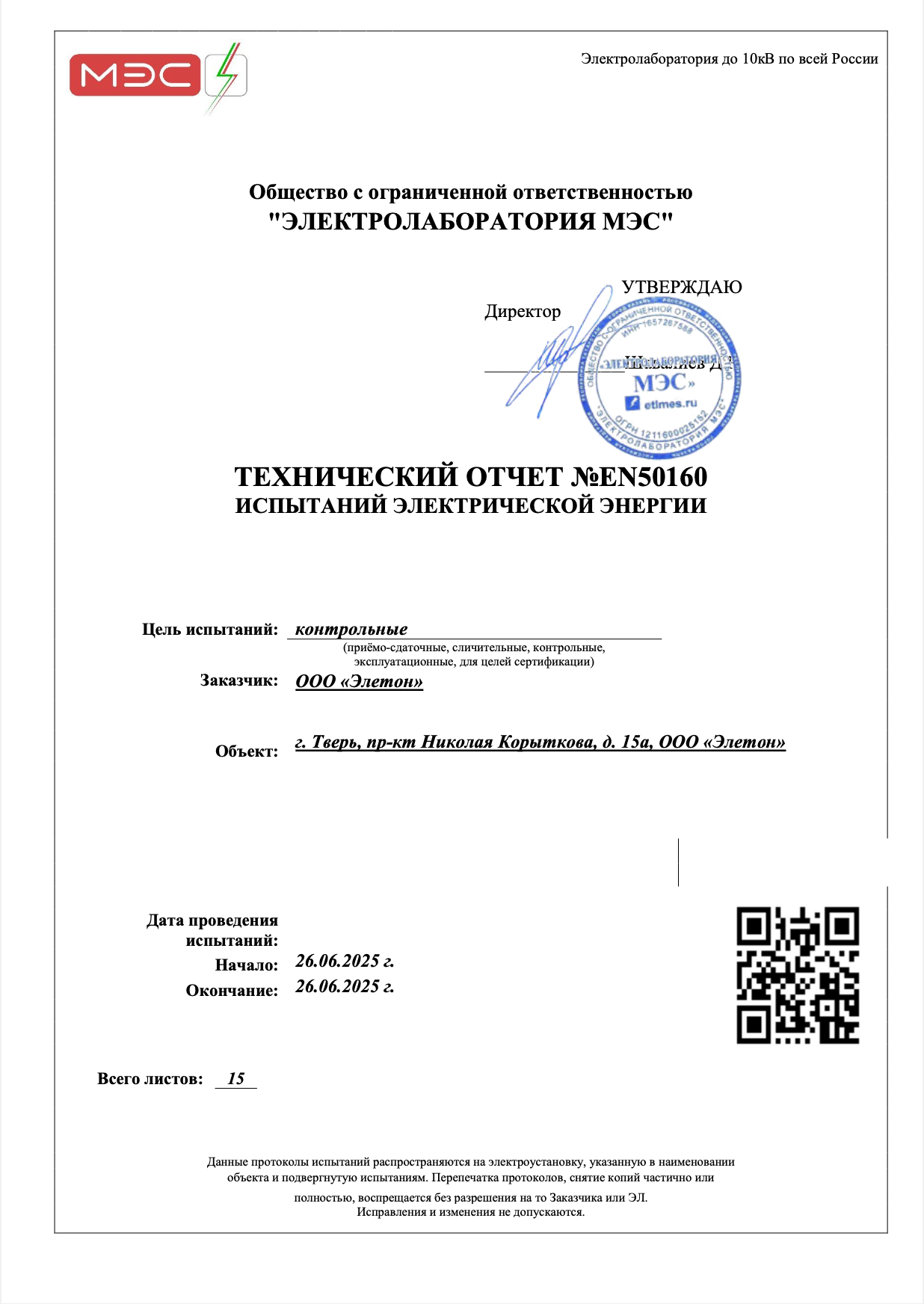 ООО "ЭЛЕКТРОЛАБОРАТОРИЯ МЭС"