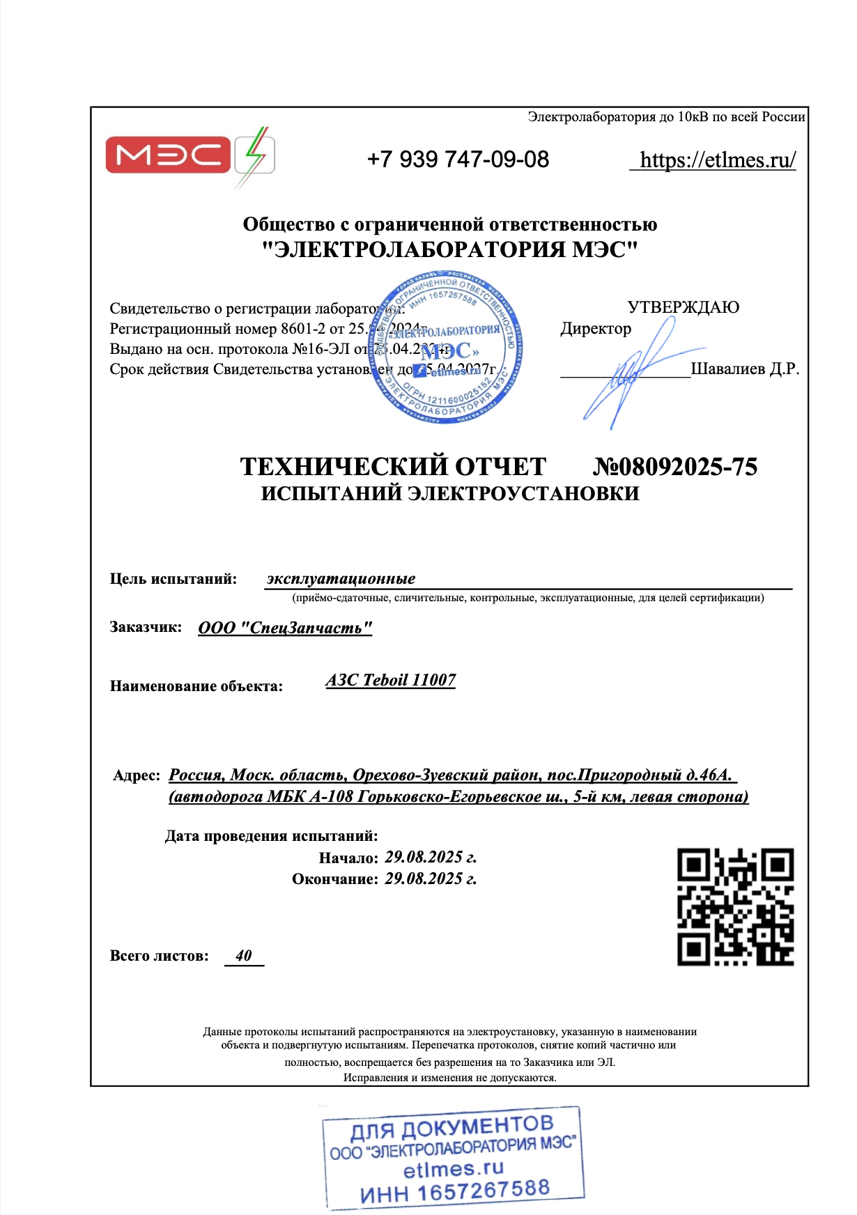 - Полный комплект исполнительной документации и электролабораторные измерения с техотчетом