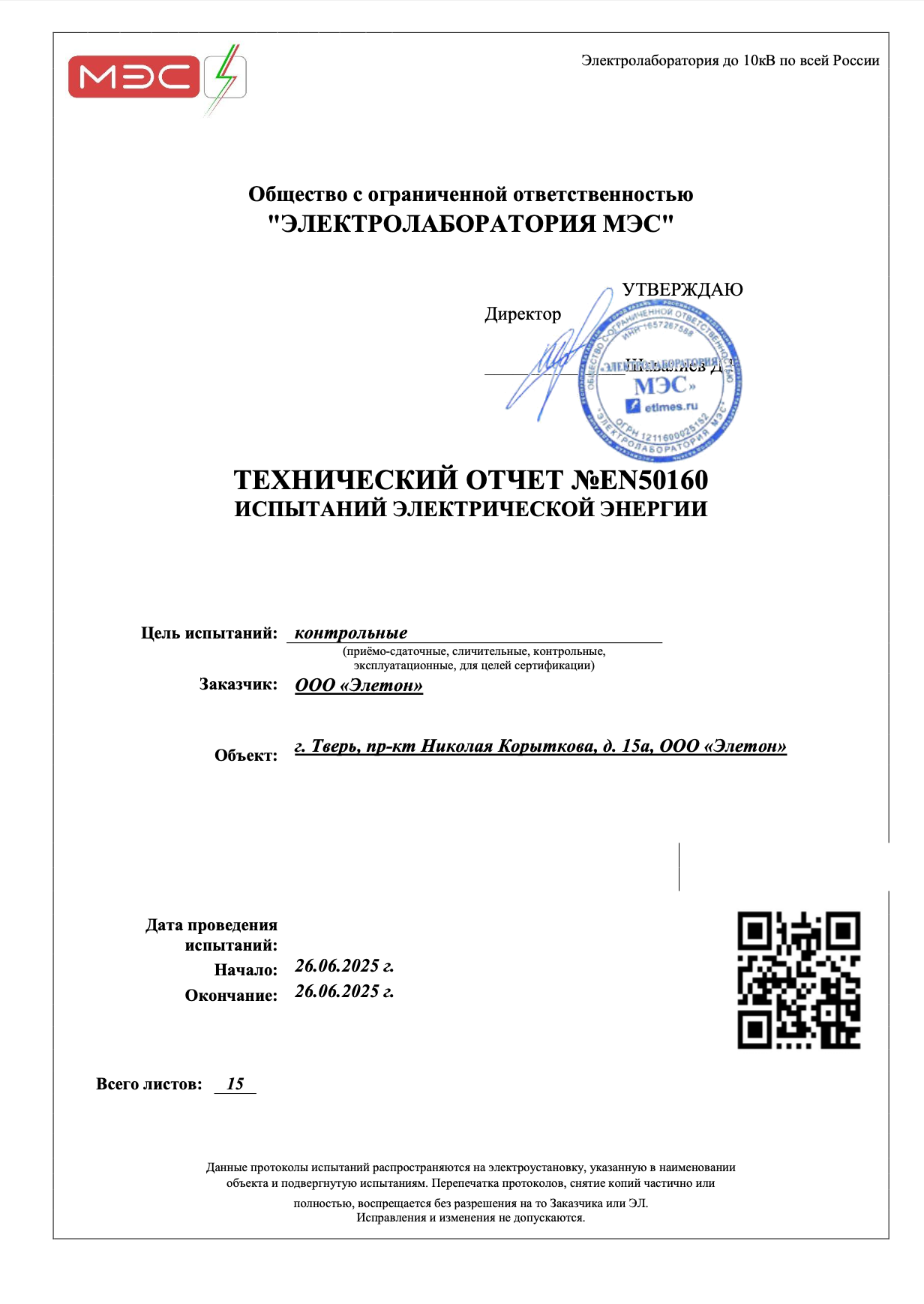 ООО "ЭЛЕКТРОЛАБОРАТОРИЯ МЭС"